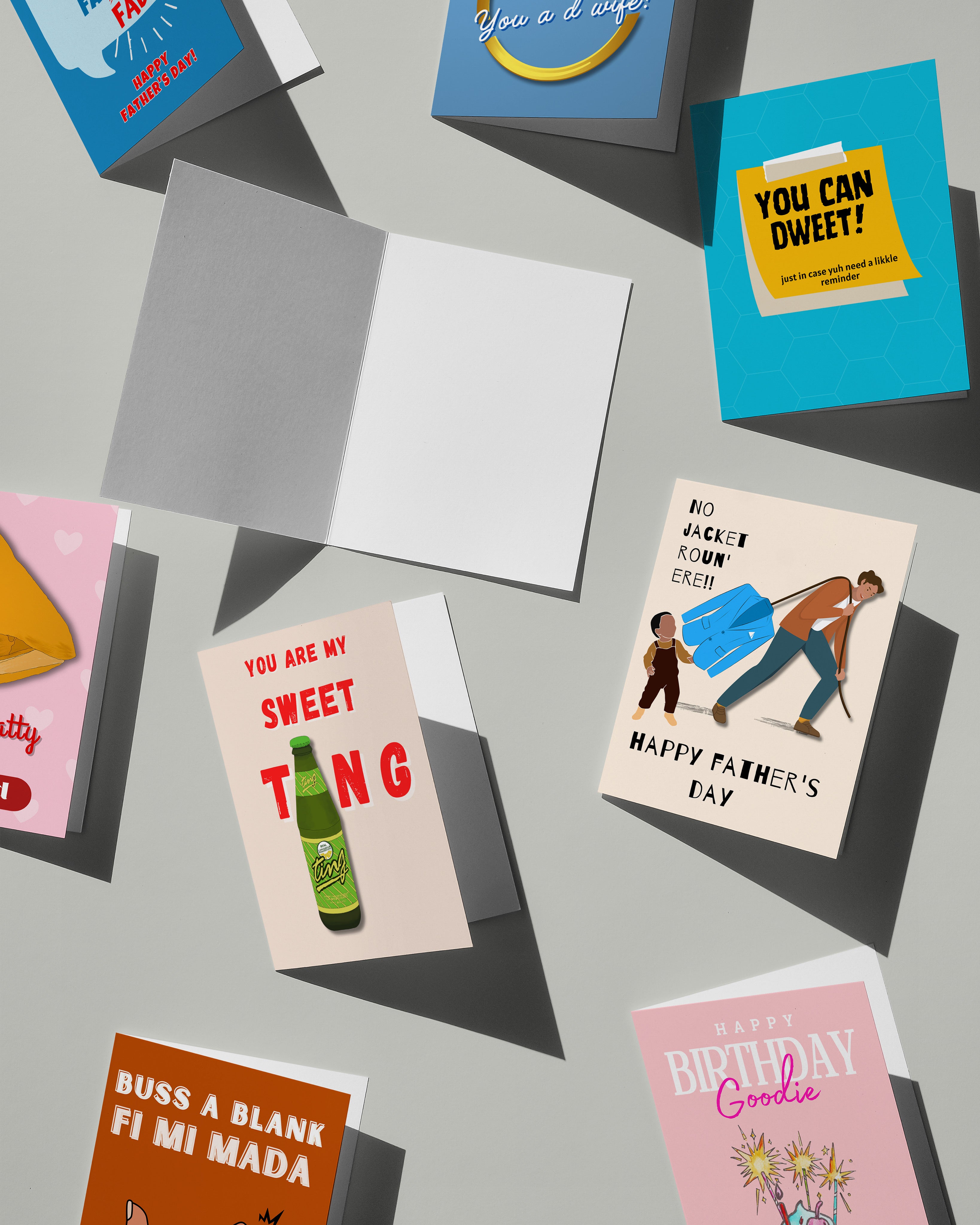 Cards Dem Nice is our bold and colorful greeting card line that blends vibrant Caribbean flair with witty, heartfelt messages. Designed to stand out, these cards add a personal and culturally rich touch to any celebration or sentiment.